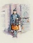 'Piper, Royal Irish Regiment', Ballymena - watercolour. (Detail of 'White Point', Co. Antrim, N.I.)